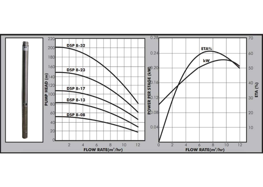 The Dayliff DSP 8 range of submersible multistage centrifugal pumps are designed for borehole water supply solutions.